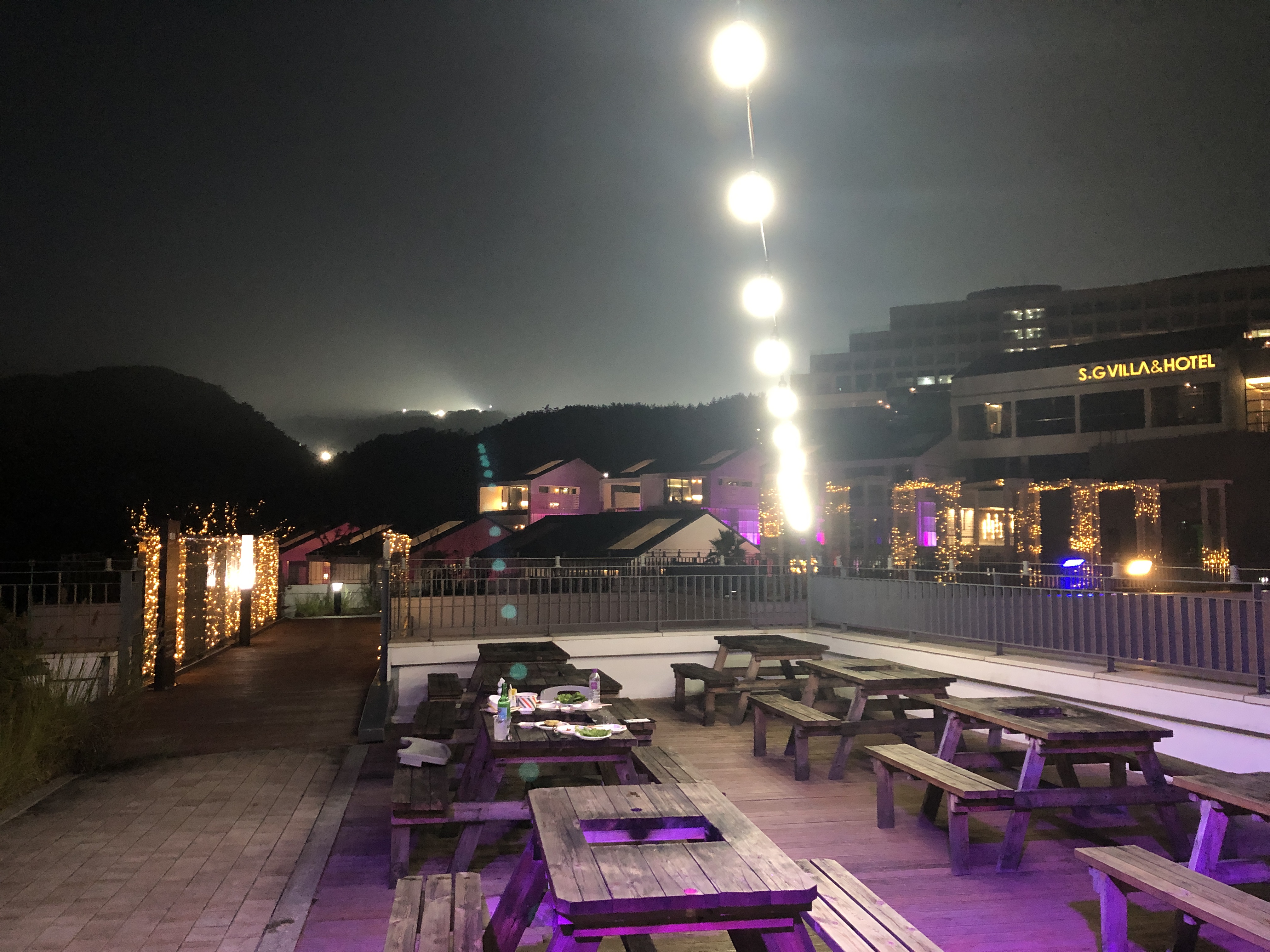 옥상에 있는 외부 BBQ식당이다. 원래 첫날은 이곳에서 저녁식사를 하려고 했는데 태풍이 올 수 도 있다고 하여 운영을 안 한다고 하여 아쉬웠다. 결국 경주는 태풍 영향권은 아니었지만 우리가 묶는 내내 BBQ는 이용할 수 없어서 아쉬웠다.